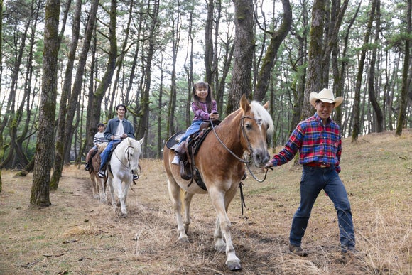 The staff will lead you, so even beginners and children can feel safe and enjoy the height and warmth of riding on a horse.