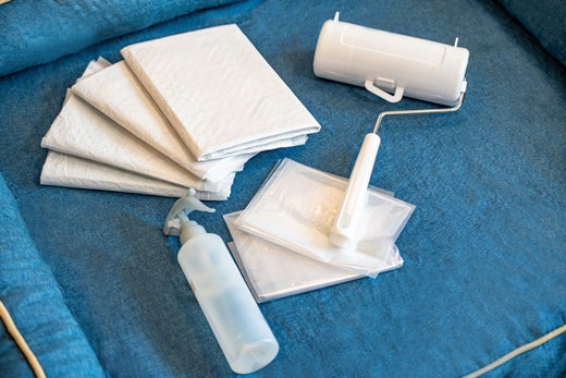 Gates, indoor cages, food bowls (feeders), pet sheets, buckets, sticky rollers, plastic bags, newspapers, foot wipes, deodorizers