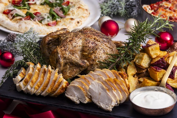 ホリデーシーズンならではのローストチキンや鶏肉のクリーム煮込み、クリスマスリースをイメージしたピッツァ、10種類以上の具材を組み合わせて愉しむ手巻き寿司など、多彩なメニューがビュッフェに並びます。12/20~25のクリスマス期間には、ラクレットも登場!!