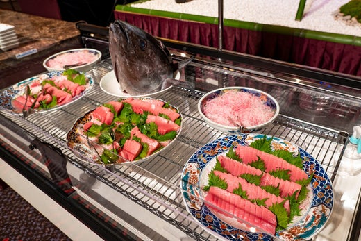 目の前で焼き上げる宮崎牛やロブスターの鉄板焼きなどのシェフアクションメニュー、オリジナルの海鮮丼が作れる海幸どんぶりコーナー、パティシエ自慢のスイーツなど、お好きなものをお好きなだけお楽しみいただける贅沢ディナーはいかがですか。