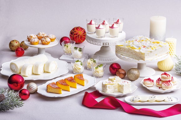 冬の訪れとともに、ガーデンビュッフェ「パインテラス」ディナータイムに白の世界が広がります。チーズのマカロンやホワイトチョコのタブレット、なめらかなパンナコッタに、やさしい口どけのホワイトロールケーキ。白を基調とした上質な味わいが、冬の夜を華やかに彩ります。ご宿泊でないお客さまもご利用可能です。
