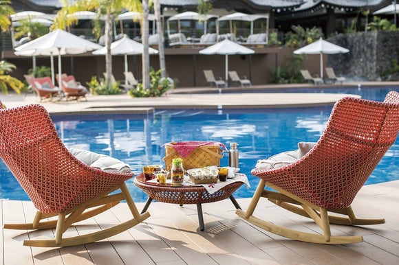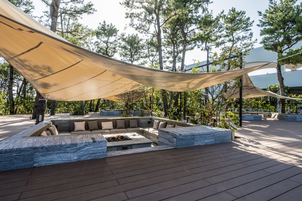 旅はじめ、羽やすめのためのテラスラウンジ。